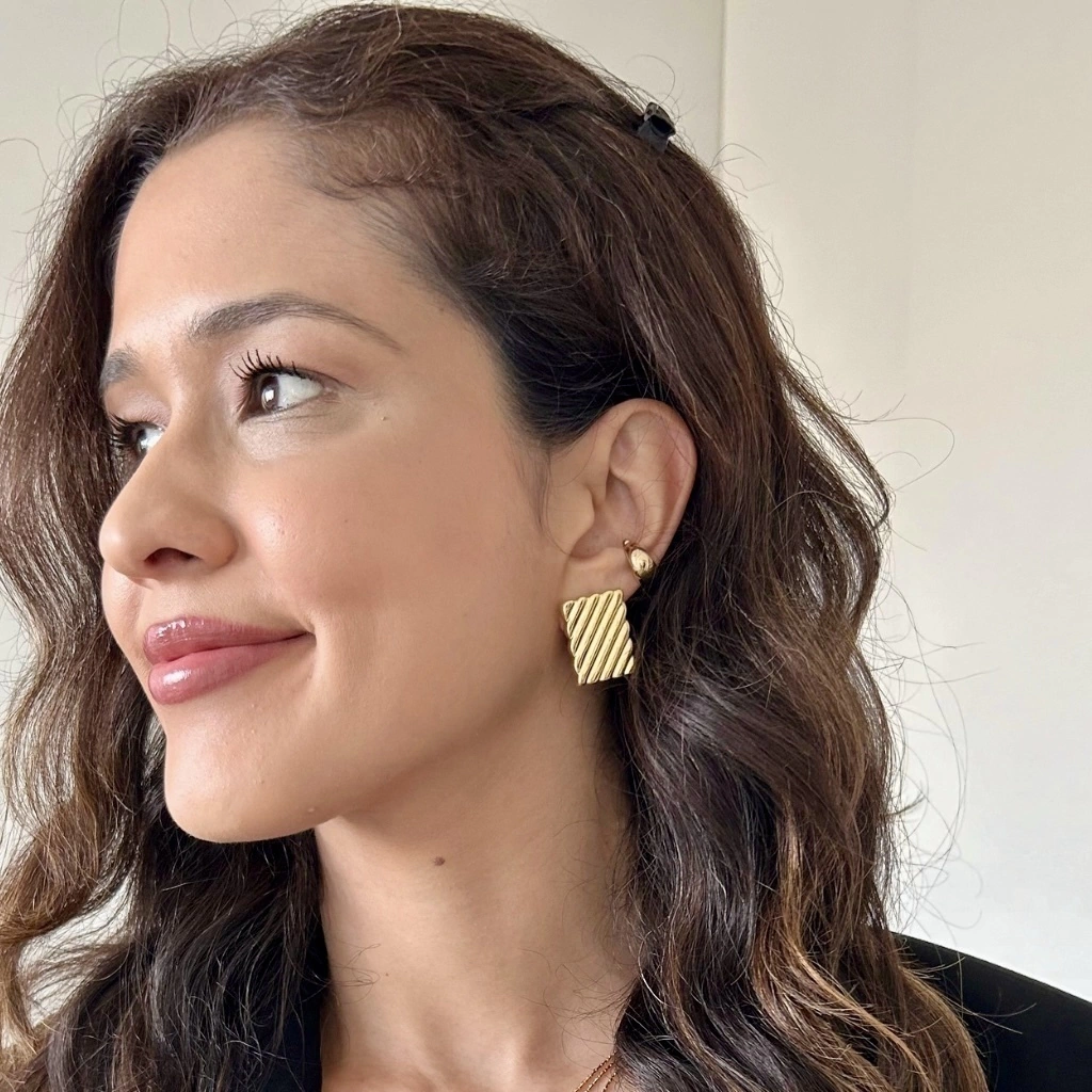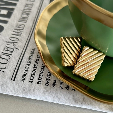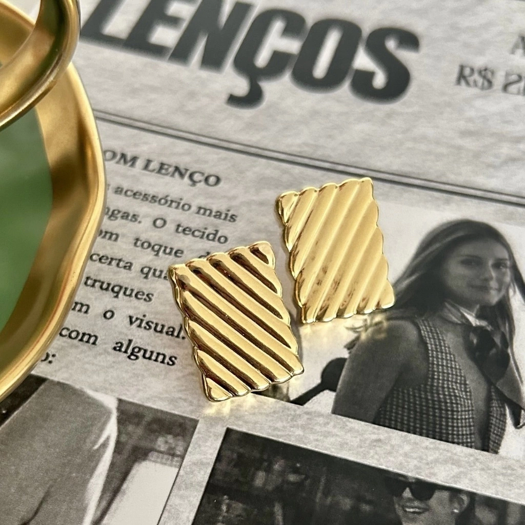 Brinco criado no método de eletroformação, com shape elegante e único, com formato retangular e textura. Esse brinco eleva suas produções e pode ser usado no dia a dia ou em eventos mais formais.